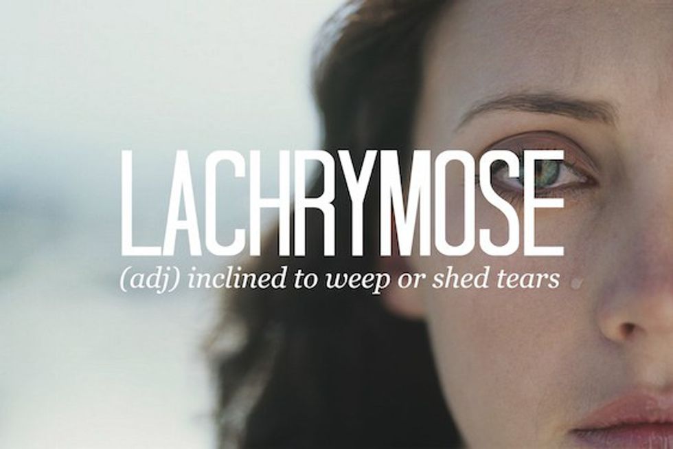 [lak-ruh-mohs] : inclined to weep or shed tears.