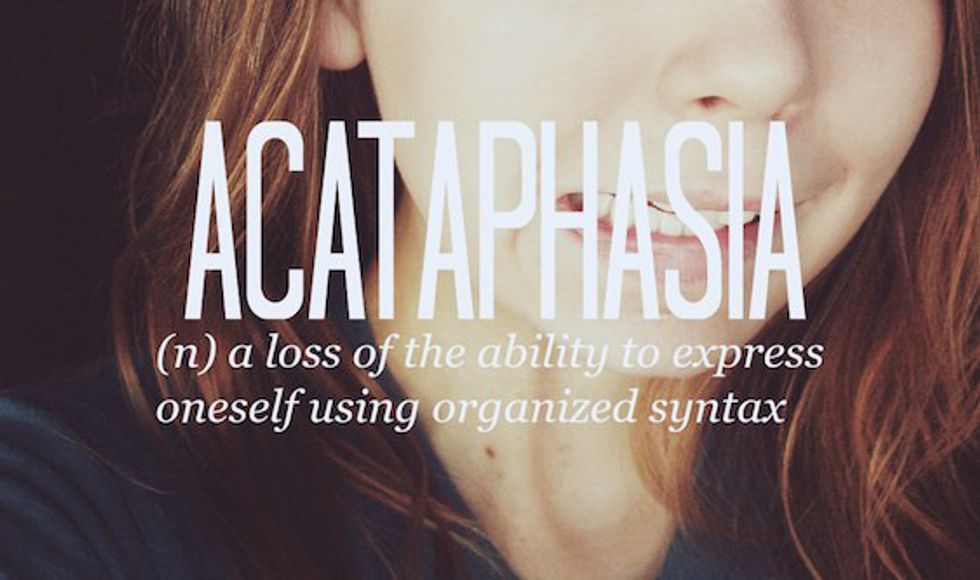 [ey-kat-uh-feyz-ee-uh] : a loss of the ability to express oneself using organized syntax.