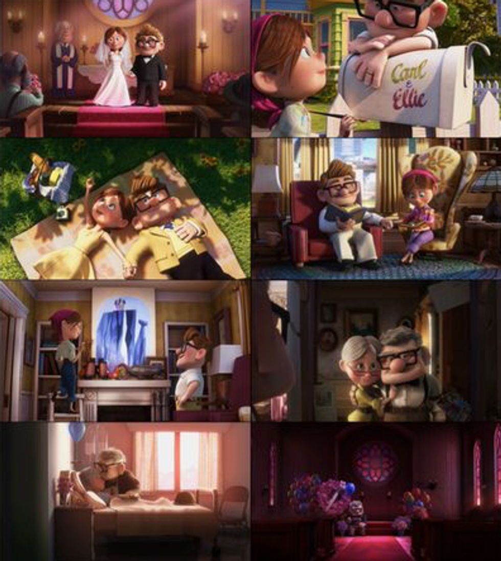 This death at the beginning of the movie was heart wrenching for any romantic. Watching Ellie and Carlās lives together was a happy and lovable experience, but at the end when it shows Ellie progressively getting more sick, it really struck home.Ā