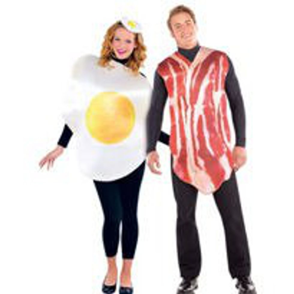 I ask myself who comes up with the ideas for costumes all the time. Why would you want to be bacon and egg? Not only will you look funny with your partner, you will look dumb. Being bacon is not a Halloween costume. The way I look at it, it's like being a carton of milk. How creative...not.