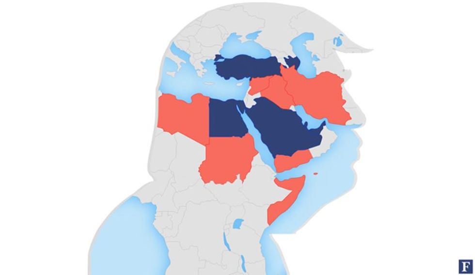 41. The travel ban only applies to countries that Trump does not have business ties in