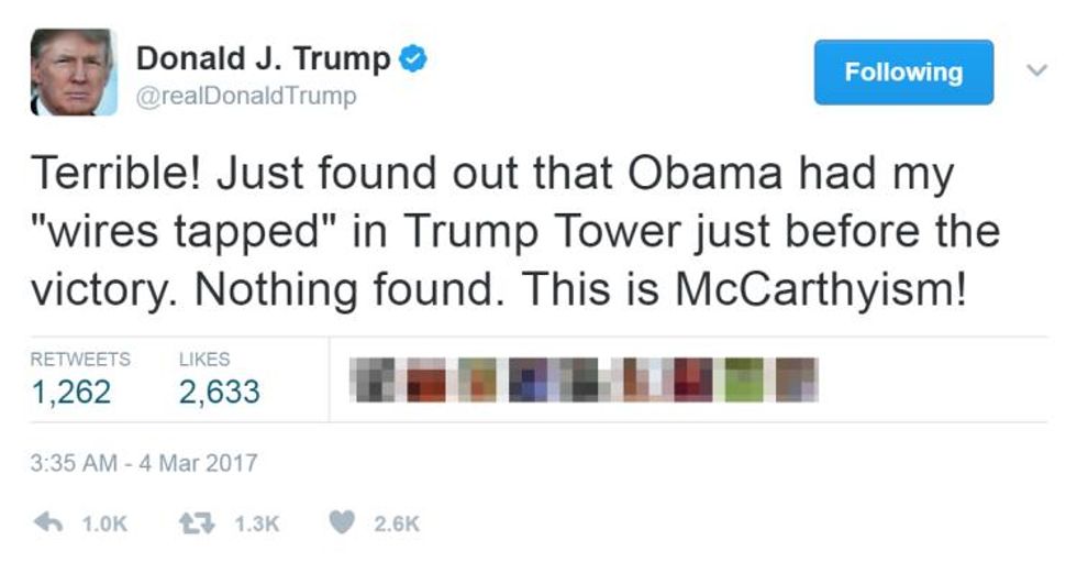 47. He accused the Obama administration of wiretapping his phones-- a criminal act that the FBI dismissed as baseless