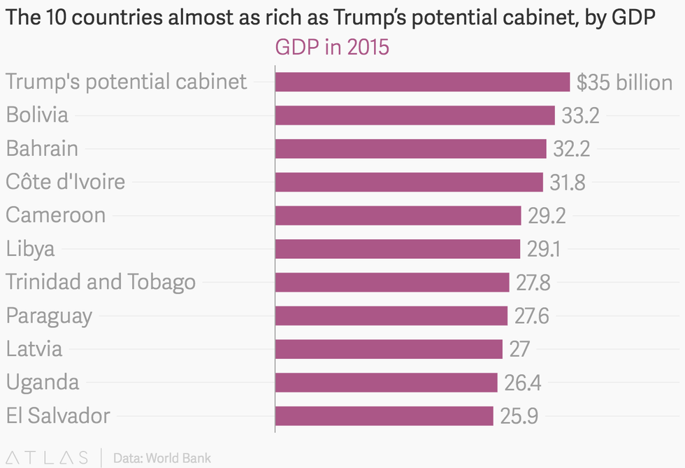 6. The members of his cabinet possess the equivalent combined wealth of ⅓ of the country