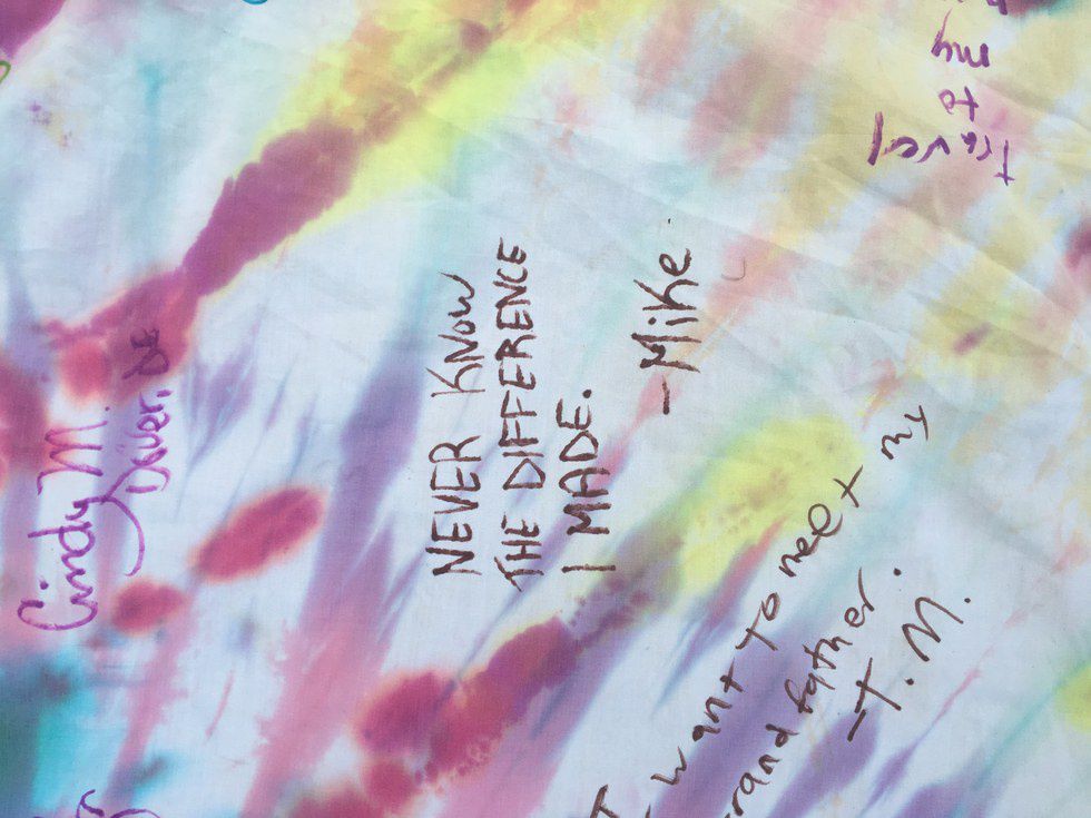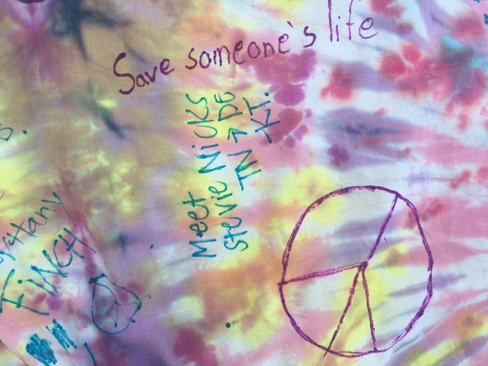 Hannah tie dyed a tapestry. And I thought the people at the festival