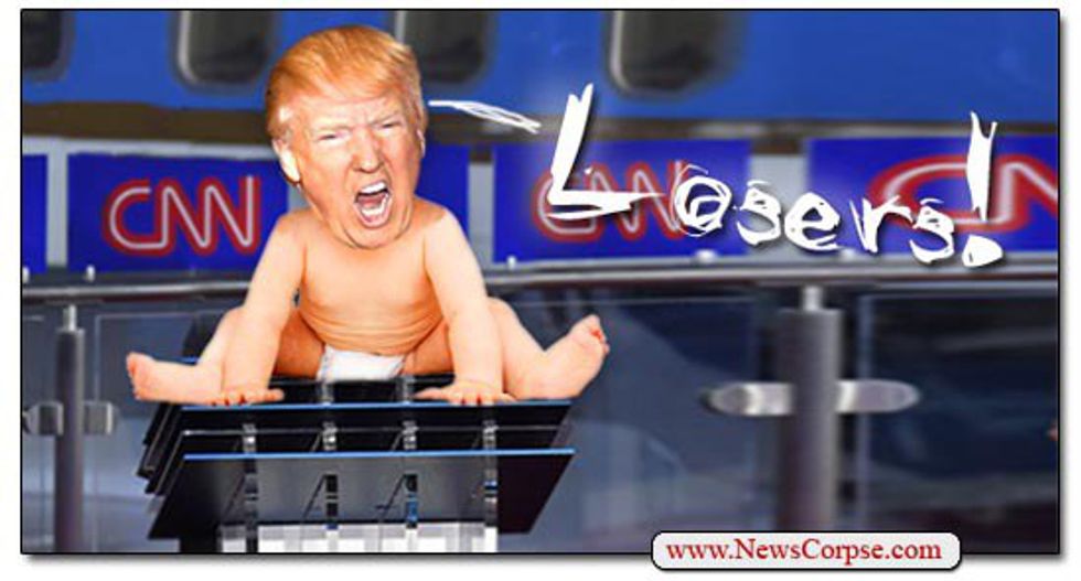 As his tweets already demonstrate, Donald Trump is a big baby. The only time he thinks about what he says is when the public responds negatively, then he may apologize. He throws tantrums and he debated like a school kid. Donald Trump bullies and ridicules people like a middle school demon.
