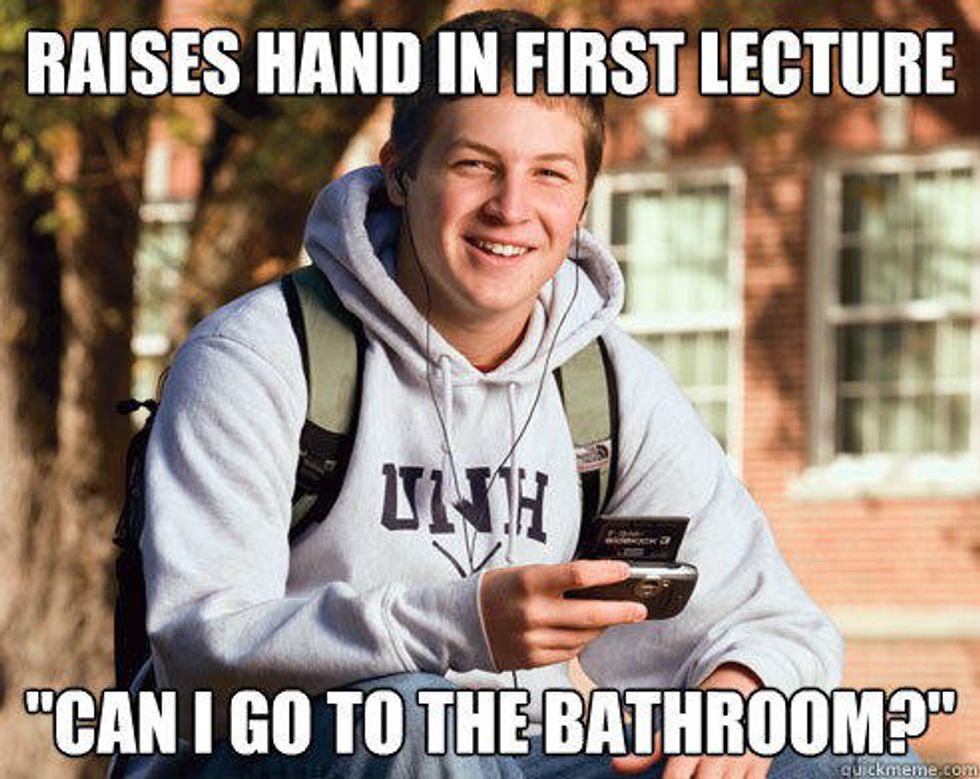 A few years ago, a University of New Hampshire student smiled and posed for a photo wearing his backpack, headphones in and texting on his sidekick, portraying all the inexperience of a college freshman. The photo then spread on the internet as a meme, representing all expected behavior of a freshman new to a college campus. Being a college freshman, I can confirm that I have done most if not all of the things on this list of memes.
