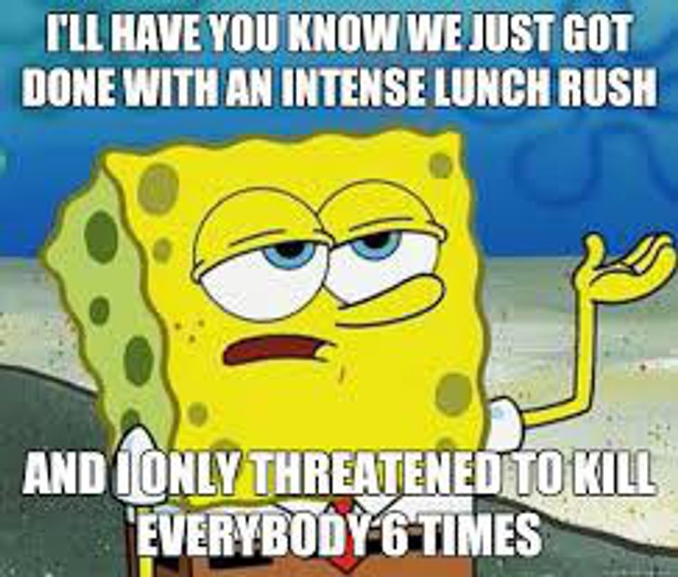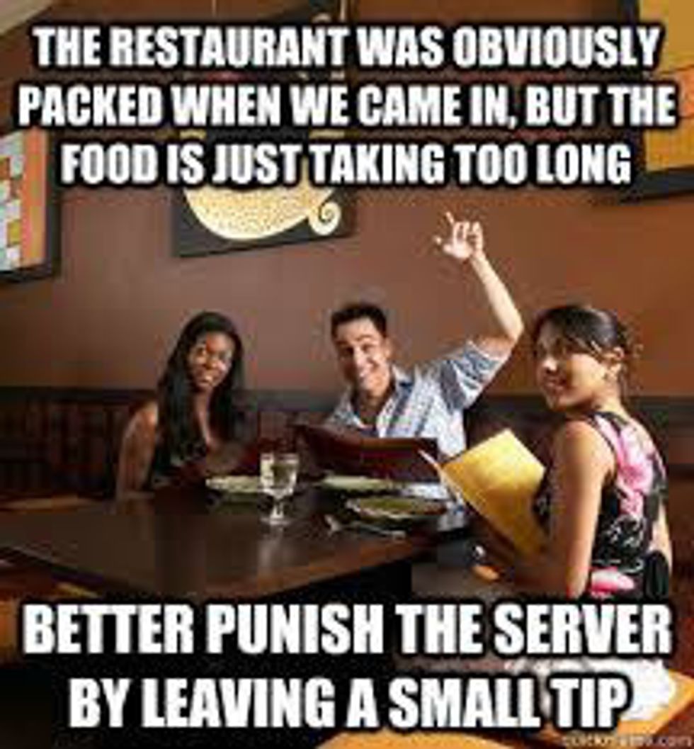 - Server dreams. No matter where you work, you will have nightmares about forgotten entrees and spilled drinks. You'll wake up in a panic ready to sprint back to the kitchen, until you realize you have 3 more hours until you have to go to work and stress out.