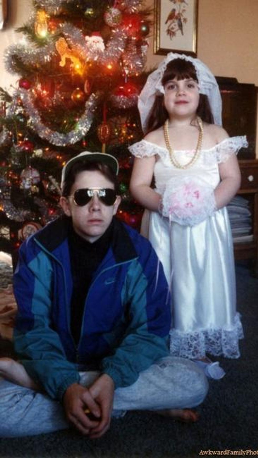 3. Merry Christmas from this freakishly young bride and some strange kid in sunglasses.