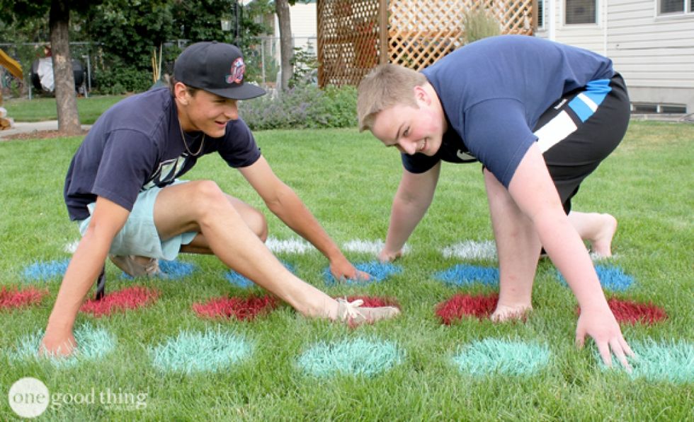 Lawn Twister is an outdoor version of the board game Twister. To set up, you need to make a circular stencil and get different colored spray paint. You paint circles on the grass and let them dry. You can either use the spinner from Twister if you have it or make your own. This outdoor twist to a classic game adds a new level of difficulty and a new element of fun.
