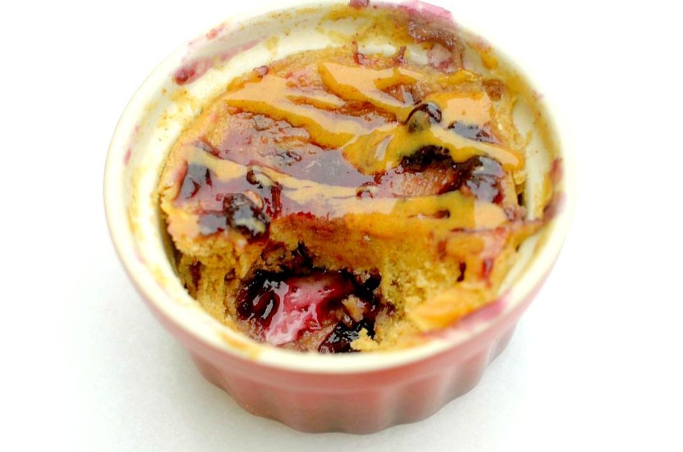 Mix pancake mix and milk or water. Swirl in peanut butter and jelly. Microwave for 1 to 1 1/2 minutes to desired doneness.