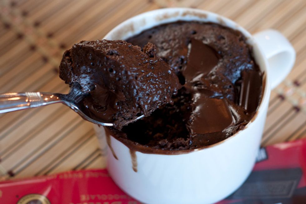 Spoon half of the batter into a large (soup sized) mug or small bowl.