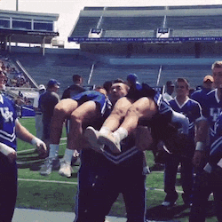 Can they cheer, stunt, and tumble? Yes. But that does not mean that they're gay. Male cheerleaders are awesome, no matter what their sexual orientation is.