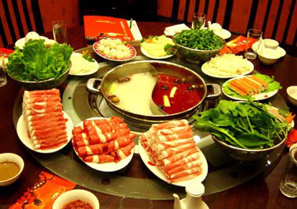 Hot pot consists of keeping a boiling pot of hot water in the middle of the table. You eat while you cook!
