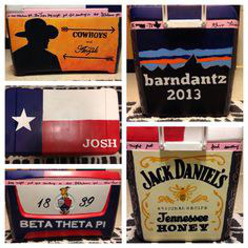 This is the original idea for going to a fraternity formal. You must dedicate a lot of time when making a cooler. The sanding, priming, tracing, painting and sealing can take many days.