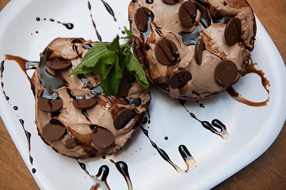 Looks like a dessert, but really, it's a bagel. That's the motto at this East Village bagel joint, Tompkins Square Bagels. Try out their birthday cake or berry berry cream cheese. More of a savory person? Try the olive pimento, chipotle avocado, or wasabi cream cheese.