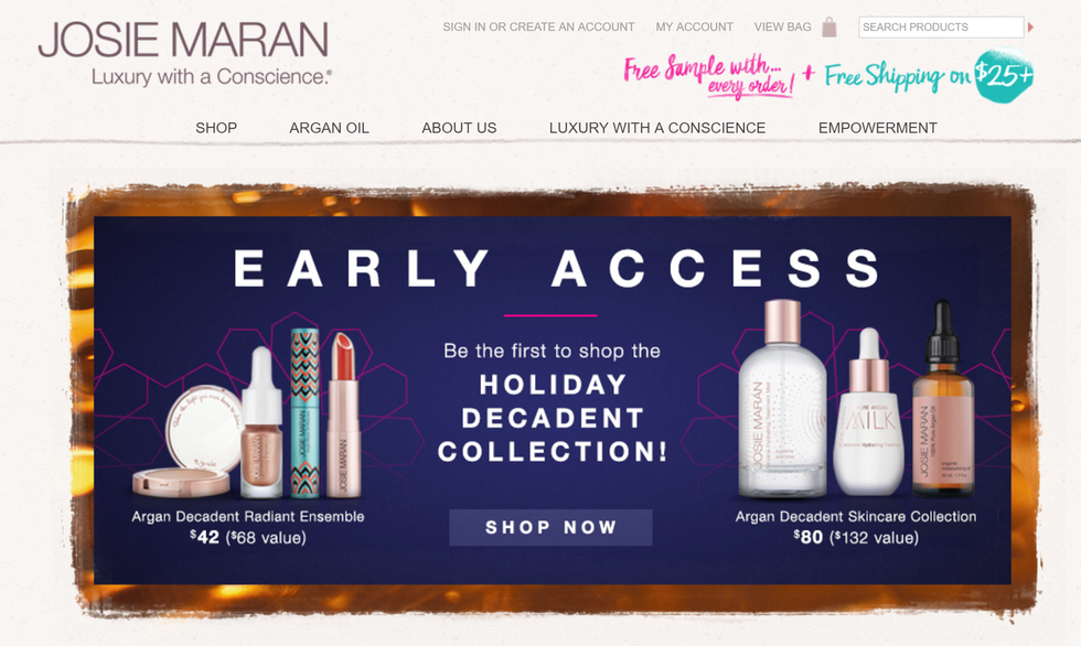Josie Maran Cosmetics saw the need for cosmetics to combine luxury and a conscience, so she made her own brand, combining beauty, fun, high quality, organic, effective, and good for the earth ingredients. They use fair trade products, including Argan Oil, use eco-friendly packaging, and partner with earth-loving and woman-empowering organizations to do so.