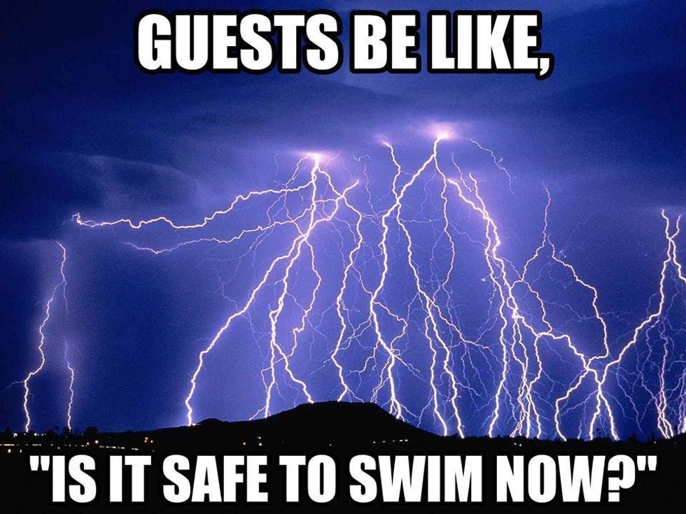 Nine times out of ten, it probably was not thunder. Nine times out of ten, the lifeguards are hoping it was. Sitting next to an empty pool is a much easier job than sitting next to a filled pool. Lifeguards are not afraid to make all the guests stay out for that half hour.