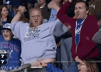 This fan is by far the loudest and most energetic in the place. He's a party to sit next to, but a bummer to sit behind because you won't see a thing.