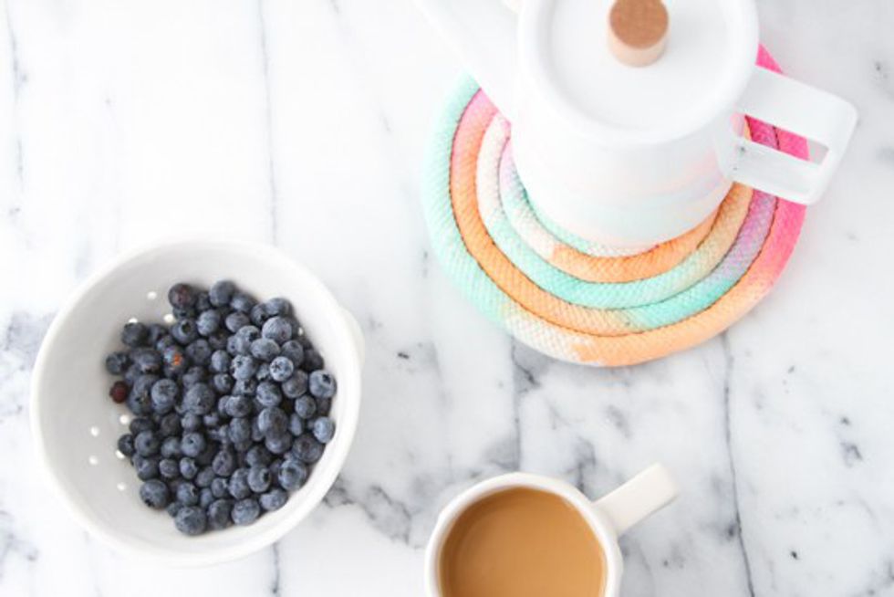 Polymer clay is your new best friend, and gold trimming goes a long way. Click here for more.10. (No-sewing) trivet