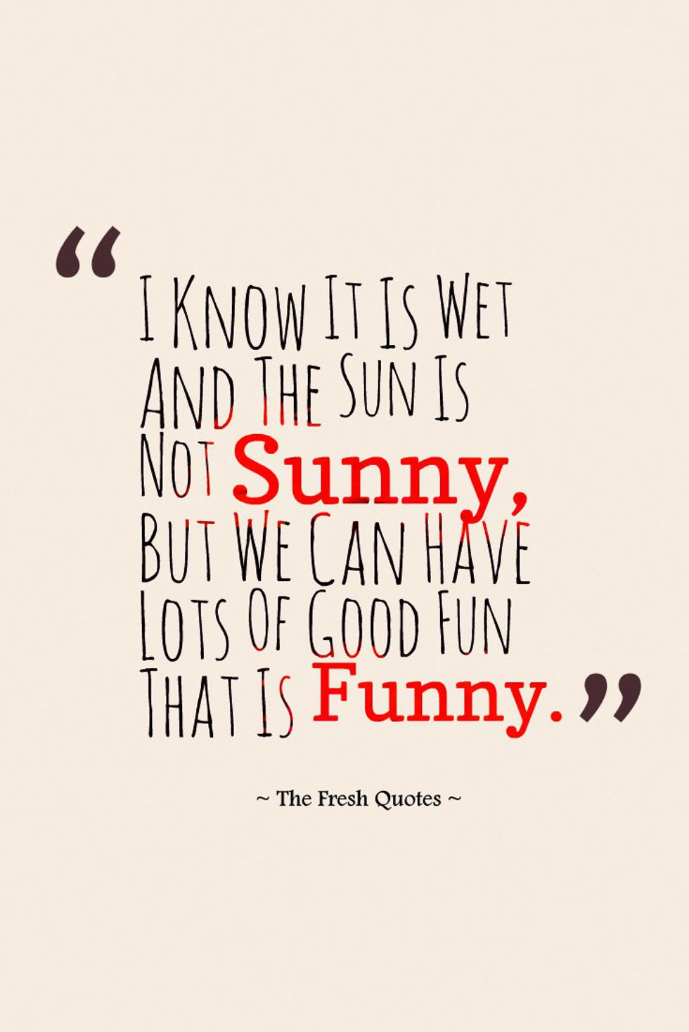 “I know it is wet and the sun is not sunny, but we can have lots of good fun that is funny.”