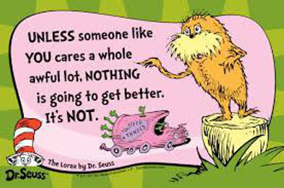 A huge difference starts by just one simple person trying to make a change. Dr. Seuss is here to remind us it is important to care about others, ourselves, and the world we live in. That is all we have, after all. But if nobody does anything, nothing will change.