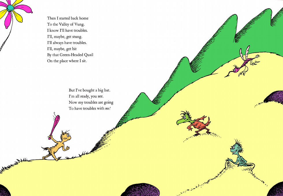 Remember that war you were fighting with yourself? It just got worse - the whole world got involved. Dr. Seuss knows that at some point, it will feel like the universe has turned against you. Nothing is going your way. What you have to do is fight back. Gather up your courage and strength, step out onto the battlefield, and show them who's boss!