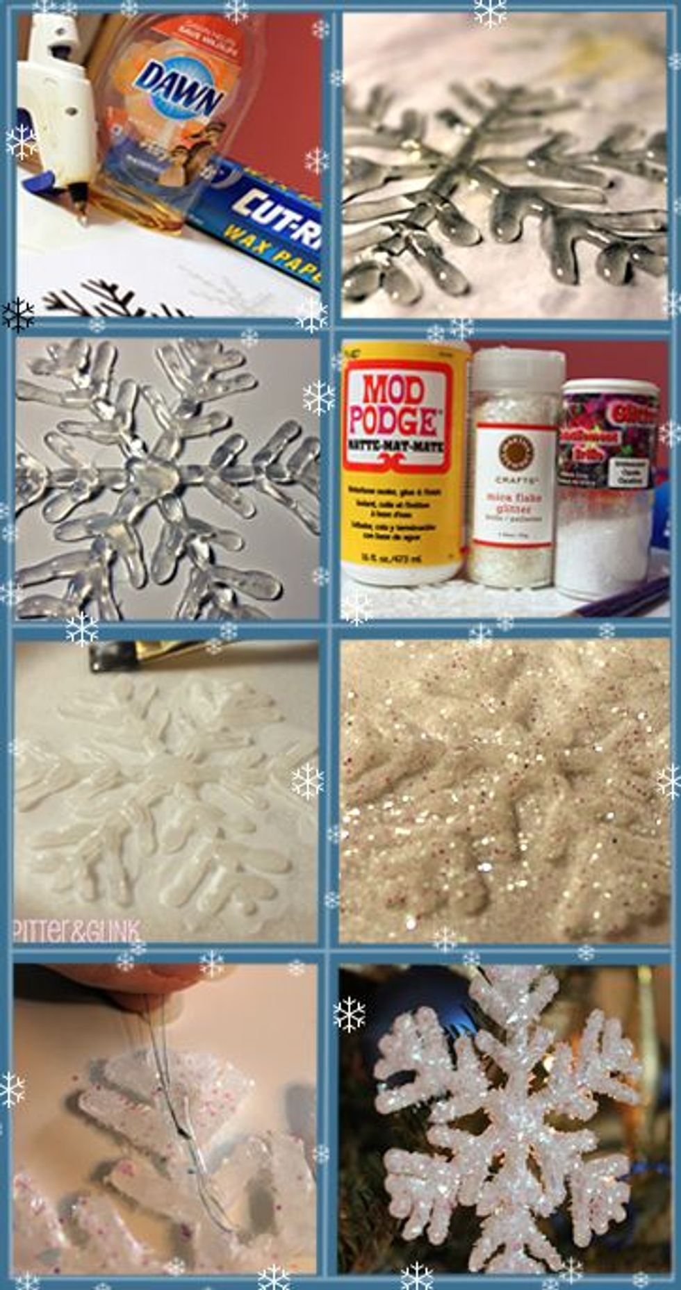 All you need is hot glue, parchment paper, and LOTS of glitter.