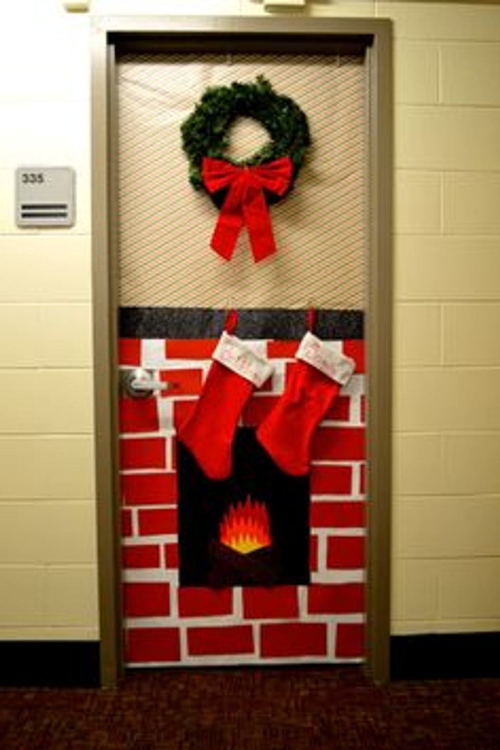 If you're living in a dorm with boring white walls, what's a better way to spice up the whole building than decorating your door?? I definitely recommend creating a fireplace like shown here.