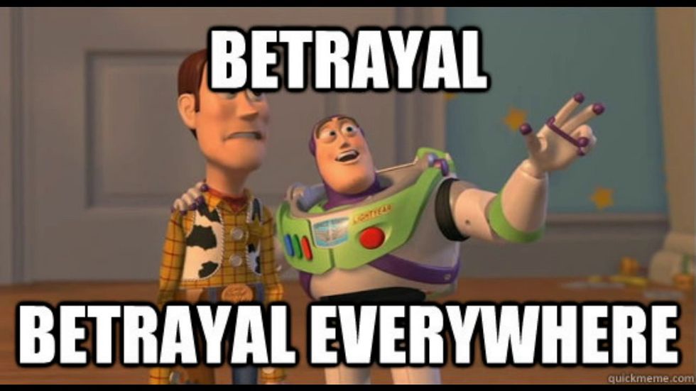The internet and it's collection of the world's greatest memes explain the anger, sadness, and dissapointment of betrayal at its finest.