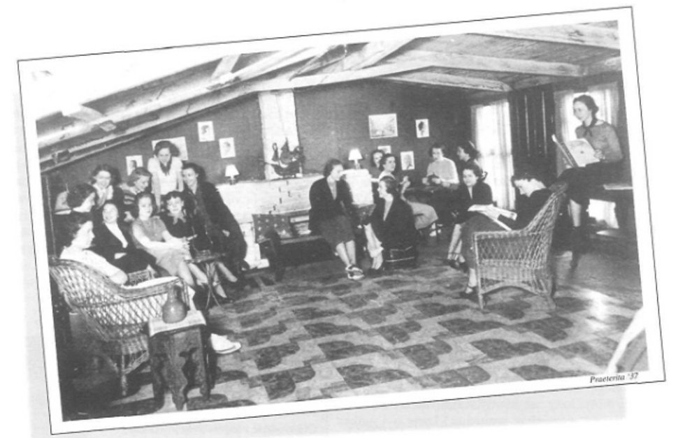 In 1933, a group of students approached the president of the college, Mother Borgia Egan, and asked if they would be able to have a place on campus to smoke cigarettes and hang out - a rather radical idea at the time. She gave them permission to use the old chicken coop as the first “student union." Eventually, the smoking lounge was moved into the basement of Old Main and the Roost burned down.