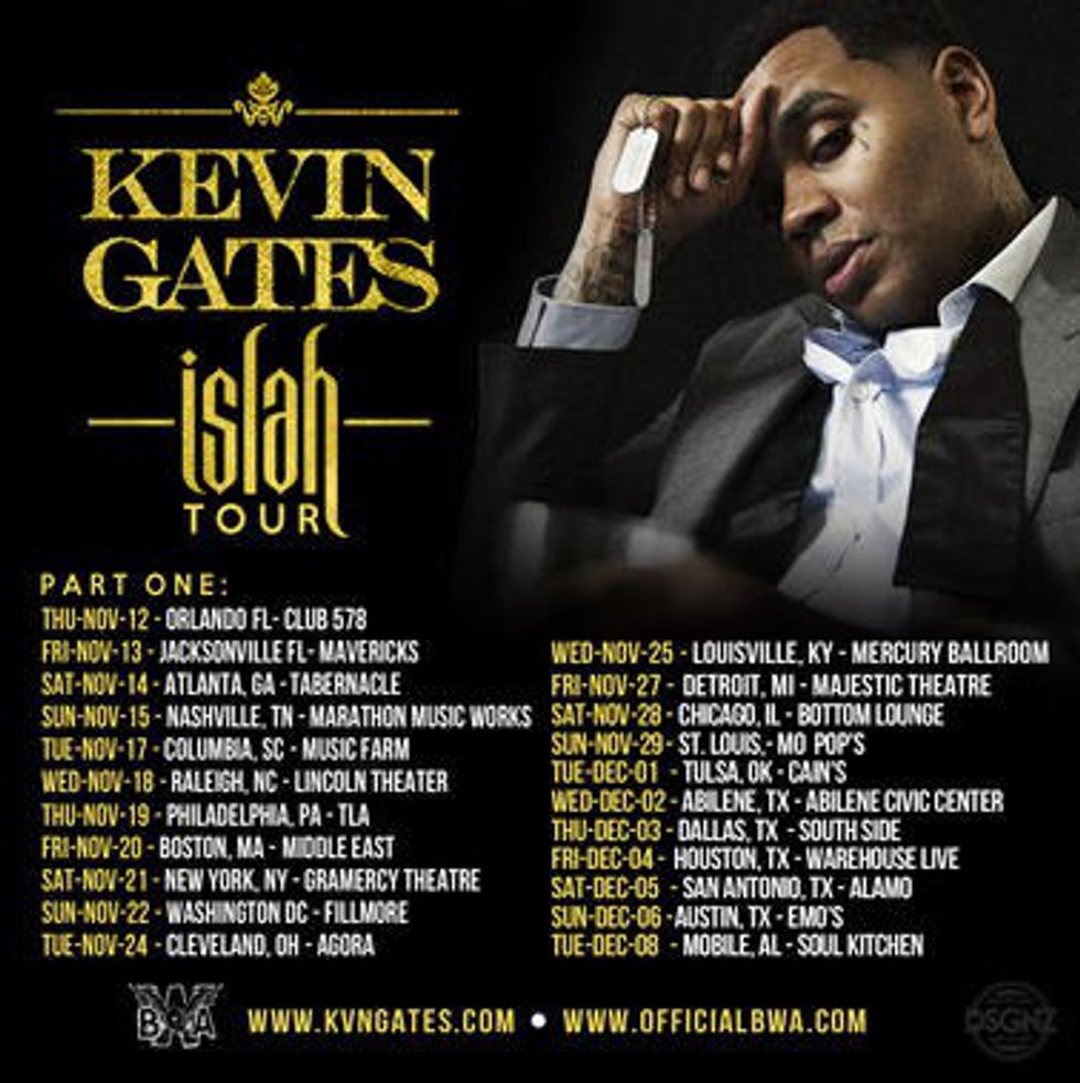 Kevin Gates is hitting the road this holiday season in support of his upcoming album, Islah. The album which is set to hit store shelves, December 11 should make waves in the hip-hop world when it drops. Considering the tour is preceding the album release date, you can expect Gates to play new records off his album, making for a good tour experience.