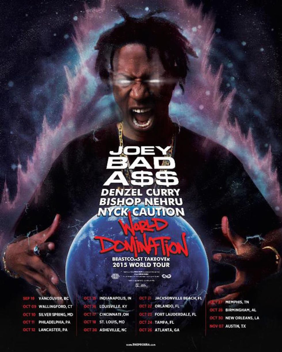 Brooklyn product Joey Bada$$ is on the road for his World Domination Tour in support of his B4.DA.$$ album. With his Pro Era gang behind him, Joey and the gang mob out on stage at every show and bring an extreme amount of energy to every performance. His streets of early life in New York City shine through his music and the way he touches the stage. Seeing not only B4.DA.$$ tracks, but also records from his early mixtape 1999 being performed, heading out to one of the stops on the Domination Tour could open your eyes to a rising young rap star.