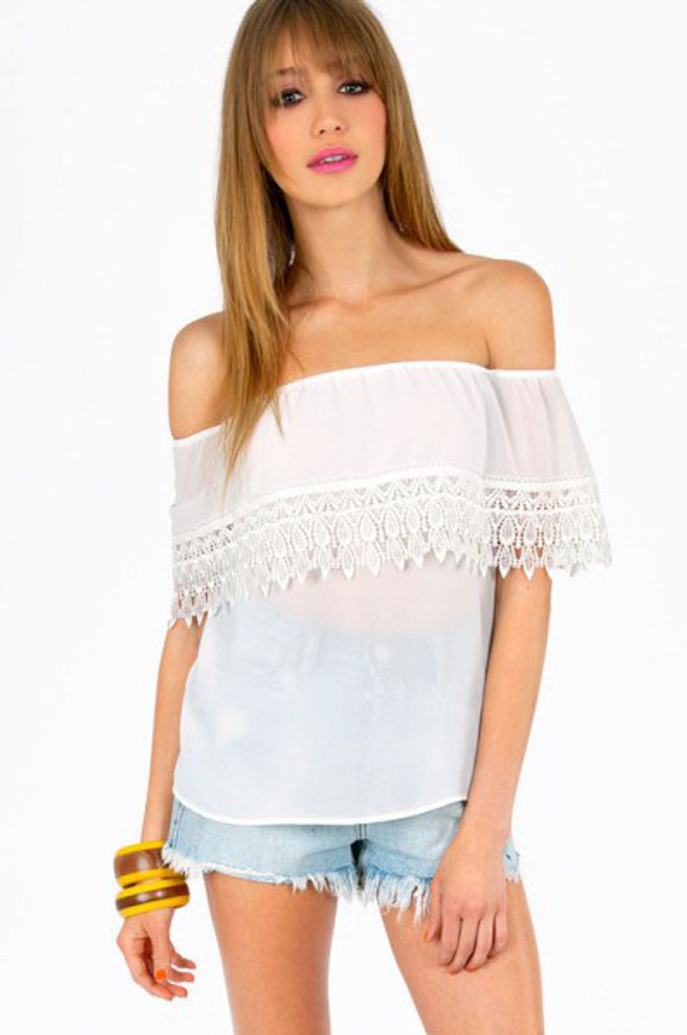 Off the shoulder tops are great for spring. They could be worn with shorts, or jeans if it's not super warm yet!