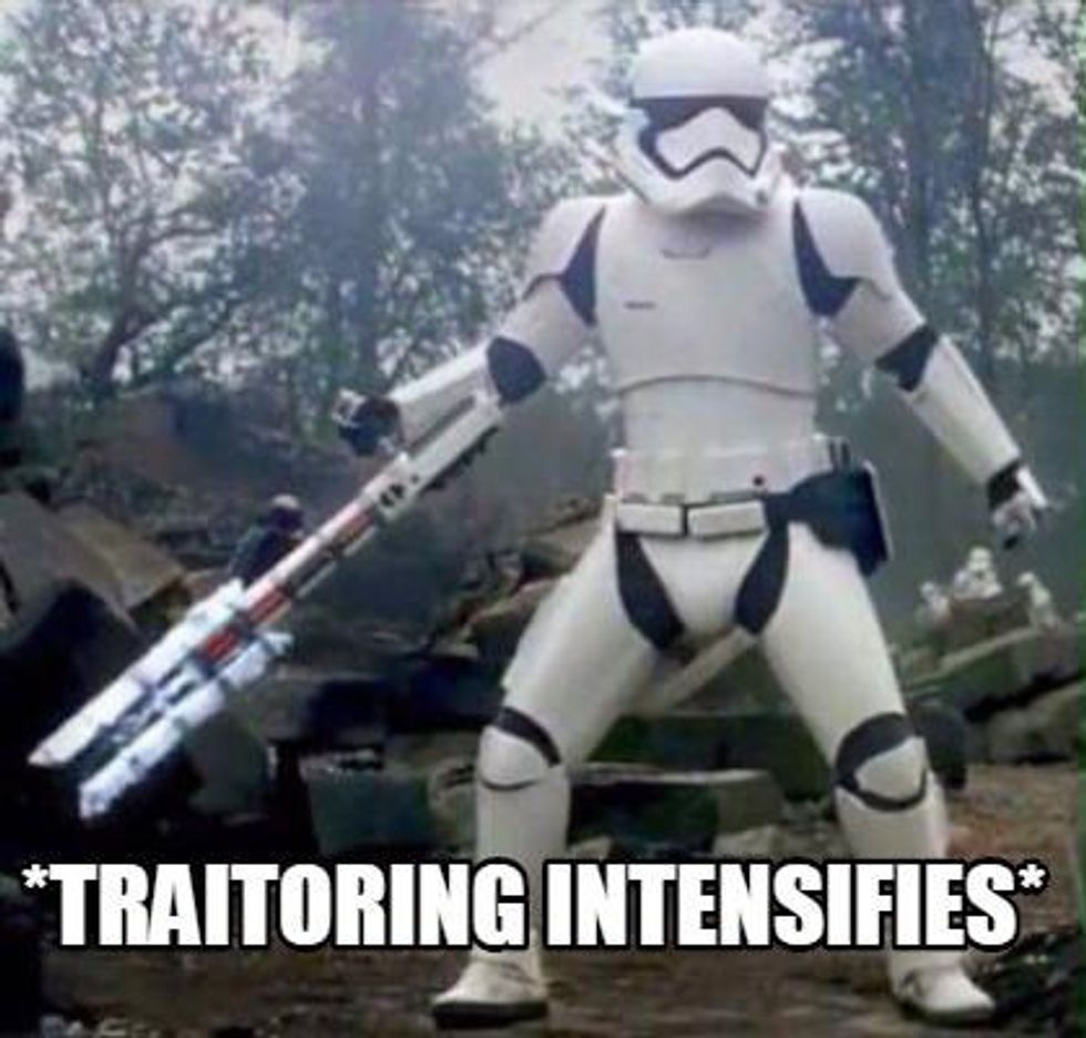 We are officially mixing our Harrison Ford metaphors freely. Incorporating a movie poster, a franchise cross-reference, Jar-Jar Binks, and no fewer than four traitors, this meme makes a strong case for the best of them all.