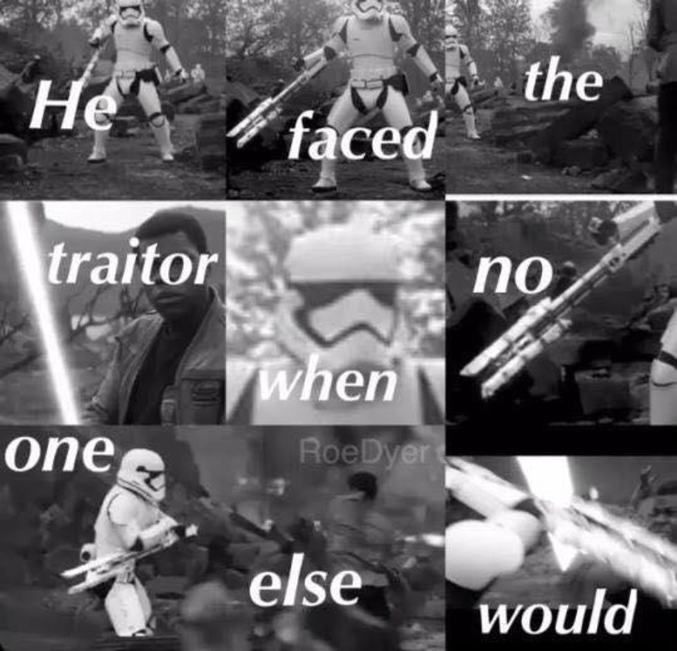 Despite an incredibly minor role, riot stormtrooper FN-2199 was one of the biggest winners from the most recent Star Wars release, The Force Awakens. Drawing comparisons to perennial fan favorite Boba Fett for his iconic quotability and an aura of mystery, "TR-8R" quickly became a cult hero. Shortly after the film's release, the memes followed.