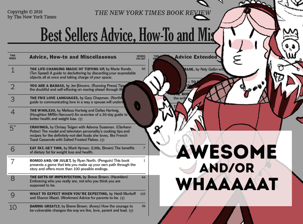 For my fellow bookworms, especially those of you who do or don’t like Shakespeare (so, yes, everyone), this is a choose-your-own-adventure book that explores every idiotic possibility the original story could have led to. And then some. You can play as Romeo or Juliet (there’s also a secret bonus character you can unlock—because that’s totally something you can do in a book) and your choices may lead you to marriage, death, piracy, nudity, riding a stallion named Butt Soft and other wonderful conclusions. This gem combines reading with gaming and adventuring in a whole new way. Everyone should read it, no exceptions or excuses. There is also a Hamlet version that was just re-released, called To Be or Not to Be. Read it, too.