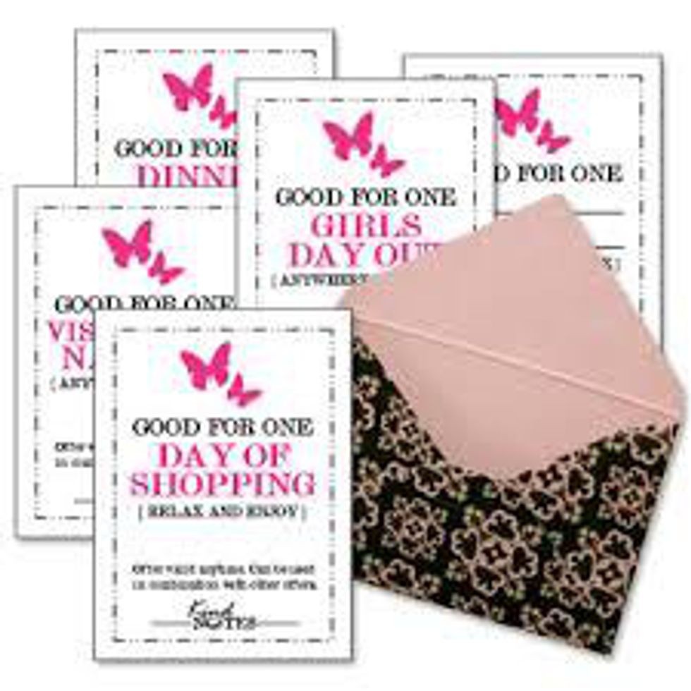Make them “coupons.” Have you seen the coupons that are like, “You deserve a break take the day off and do something you love?” Well, make coupons geared toward that person. For example, you could put on one the coupons, “One Ice Cream Date with (insert your name here).”