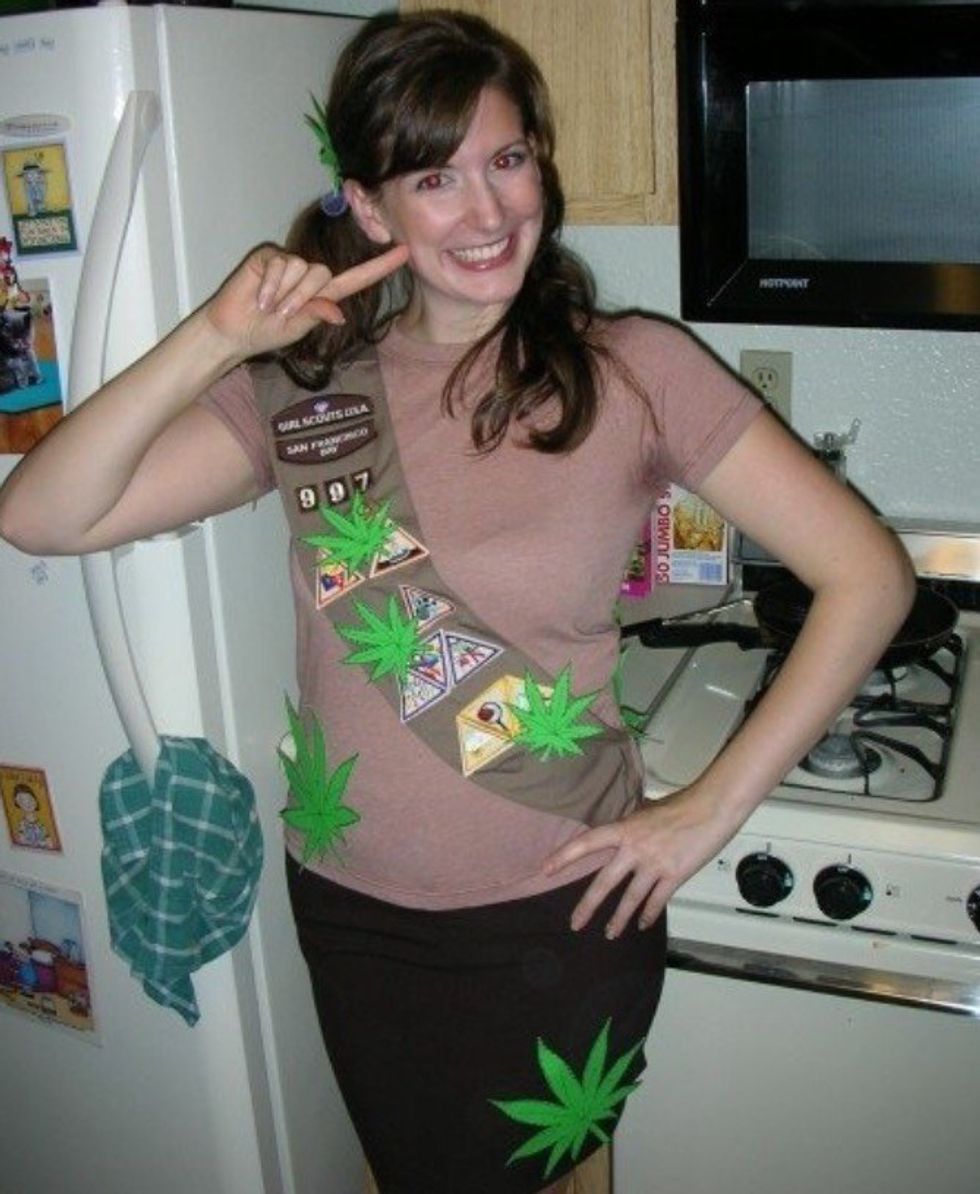 Got some old Girl Scout gear? Use it to be a pot brownie for Halloween. Another hilarious costume that is definitely a contender for costume contests.