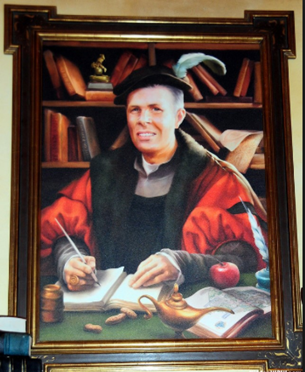 Walk just past Fantasyland and you'll find the newest area, designed and unveiled only a couple of years ago. Stroll around Belle's provincial town, and stop inside Bonjour! Village Gifts to have a look at the wares. The shop is very well decorated, and if you look at the wall, you'll see a big portrait of a man who looks vaguely like a fairy tale character. It's actually a real man, VP of Magic Kingdom Phil Holmes.