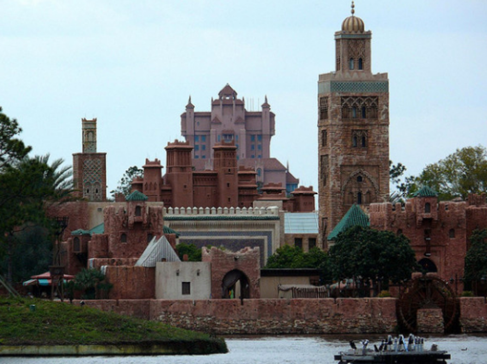 Next time you visit the World Showcase, have a look at Morocco from across the lagoon. You might notice a curious (and terrifying) tower in the background, and the color fits in so neatly with the Epcot pavilion. It's almost as if the Imagineers planned it that way.
