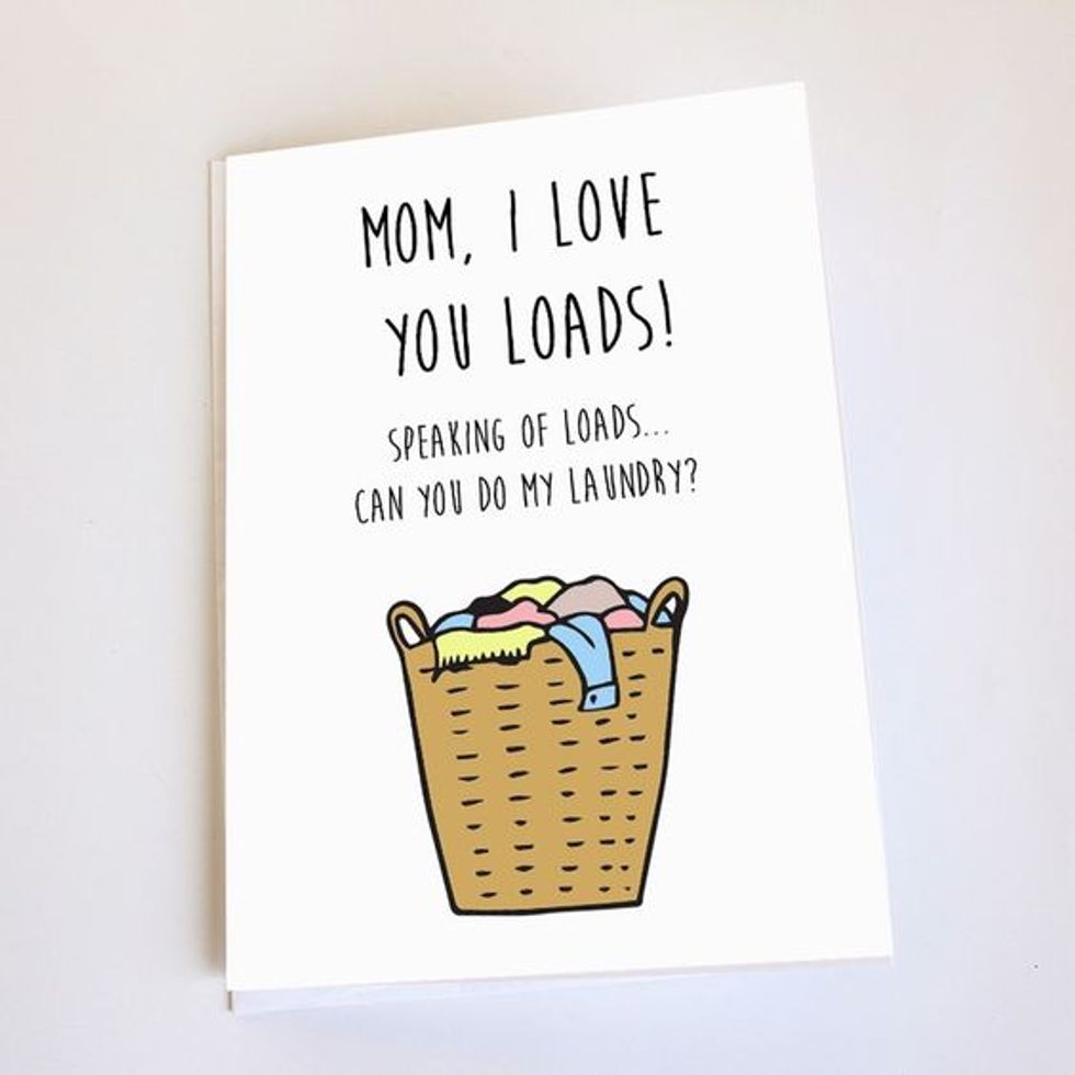 Mother's Day cards, like those for most other occasions, come in two varieties: super mushy and emotional or embarrassingly dumb with a goofy animal on the front. For that reason, I like to type up my own cards with hilarious puns and funny sentiments that I find on the internet. Here are a few of my favorites for this Mother's Day.