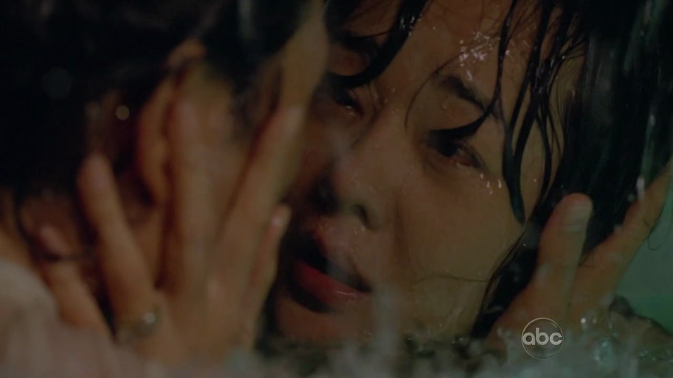 One of our very favorite couples throughout the whole series is Sun and Jin. Although they have their own ups and downs, they remain faithful to one another until the end. When Jack realizes that he will either have to save Sawyer or die with them, he leaves them as they acknowledge their looming deaths.