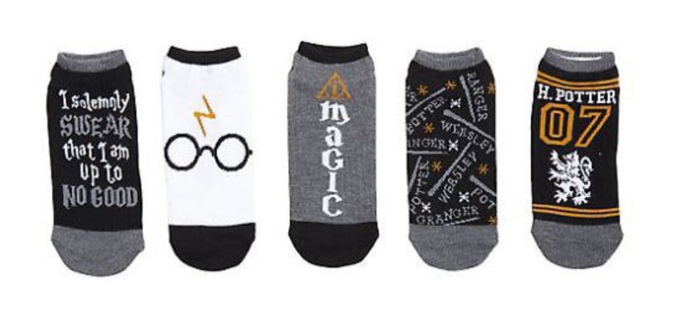 Unless you're that one guy I went to high school with who never wears closed toed shoes, you probably need socks sometimes, whether it's to wear with sneakers or to slide around on hardwood floors. Why not secretly be wearing something Potterish if you need to be wearing them anyway?