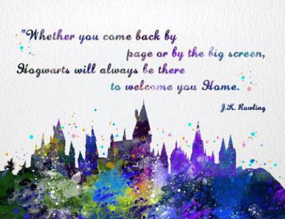 For so many of us, J.K. Rowling's novels created a world we called home, if only in our heads, one where we took classes alongside our favorite characters and stood beside them when it was time to fight. This painting, found here, reminds us that no matter where we go, or how we come back, there will always be a home for us at Hogwarts.