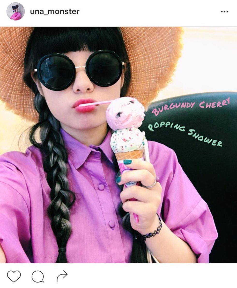 If you're into Tokyo street style, follow @una_monster! Her Instagram is full of bright colors, Tokyo fashion and food!