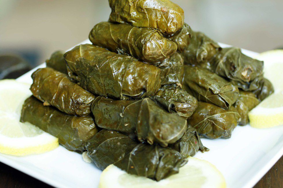 Grapes leaves also look a bit frightening however they are amazing if made right...especially if they are home made. It is rice and meat wrapped in grape leaves. So. Good. Also healthy.