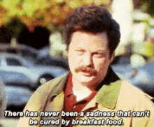 7. Ron teaches us that no matter what is going on in our life, whether it is a failed test, being red-flagged by the government, or finding out your favorite character in your most recent Netflix addiction died, breakfast can cure anything.
