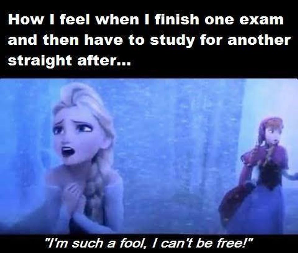 I always hate this time of year. I feel like I'm so busy trying to keep my grades up, I can't even breathe. Therefore, I've decided to provide some comic relief for this exam season. I'm sure anyone in college understands the struggle of final exams.