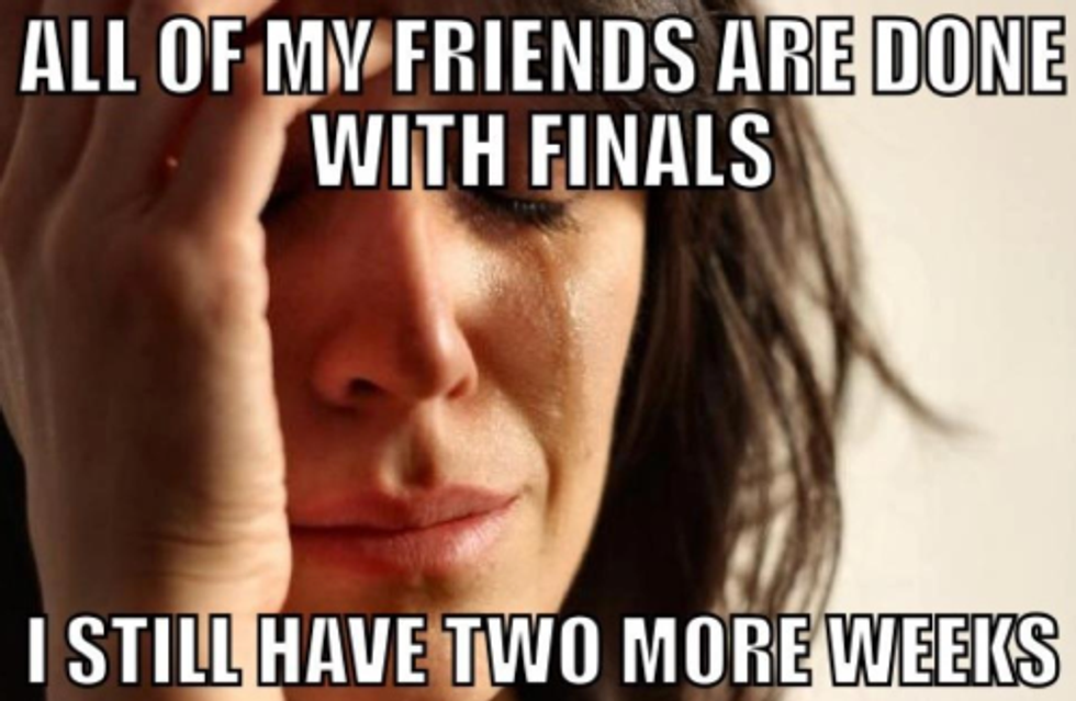 It's that time of the semester again! Final exams are barreling at us like a bull in a china shop.