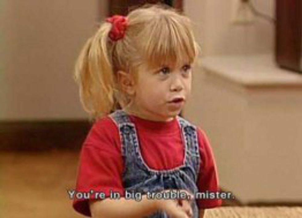 Whether you're simply quoting Michelle,or someone really is in trouble, here's your perfect catch phrase. It's great for lightening the mood, but can also be used if you need to be serious. This goes along with not being afraid to confront someone when they've done something to upset you. Use it as an easy transition into talking about it, or just mess with people until they apologize for things you don't even really care about and watch as they panic.